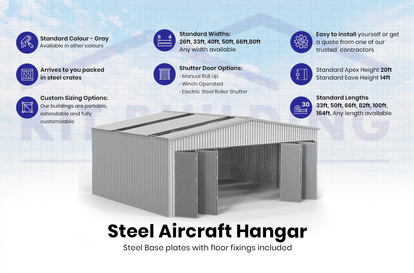 Kit Buildings Aircraft Hangar 40ft x 50ft x 18ft (12x15x5.5m) / 50mm Insulated Sandwich Panelling Steel Aircraft Hangar